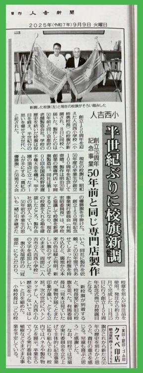 【校旗新調の現場】熊本県人吉市立人吉西小学校の校旗を50年ぶりに作成させていただきました