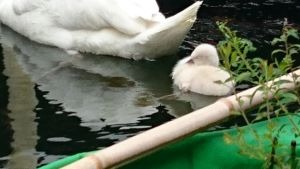 六角堂の池にやってきた白鳥のひな